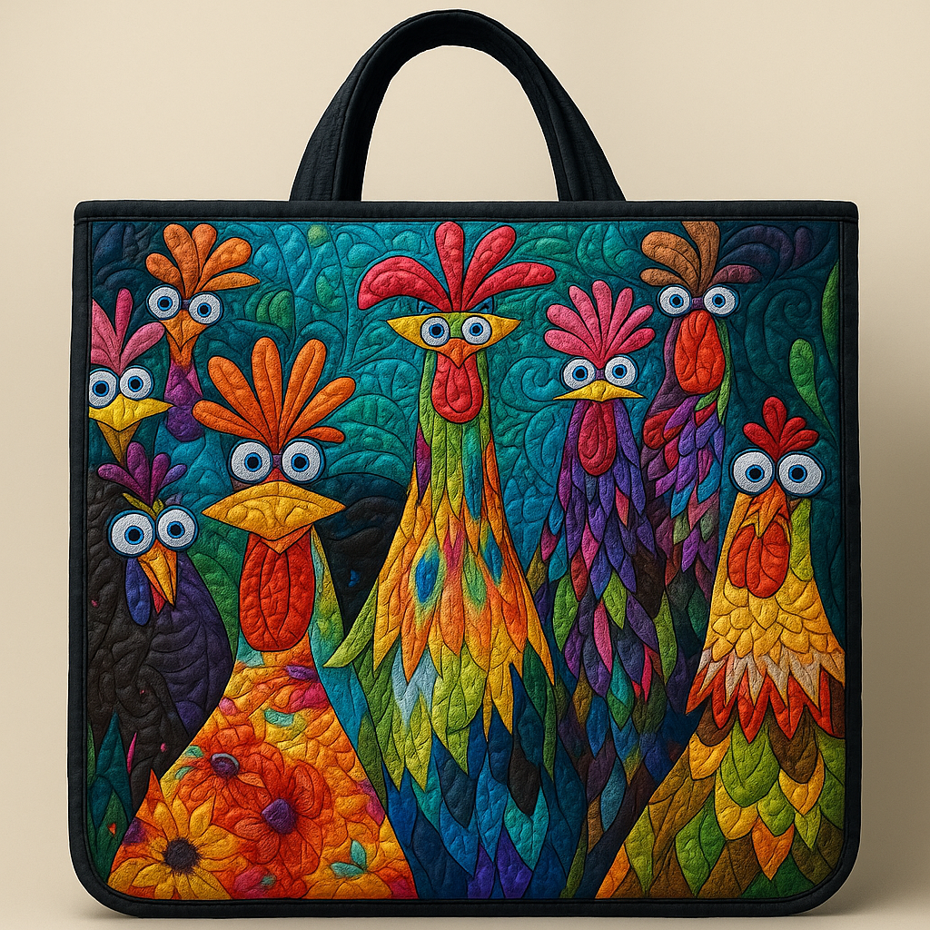 Colorful Crazy Chickens Quilted Tote β¨πππ€ͺ