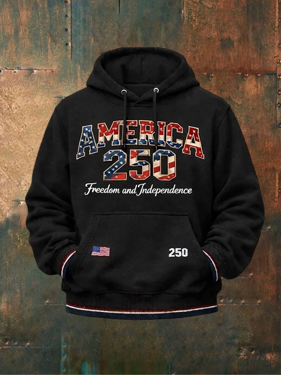 Unisex USA 250th Anniversary "Freedom & Independence" Graphic Hoodie – Patriotic Flag Print Pullover