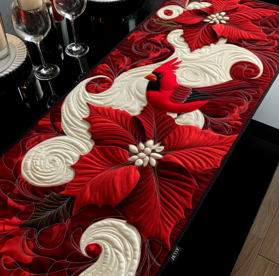 Handcrafted Quilted Table Runner with Diverse Thematic Patterns - Mardi Gras Mask, Heart Embroidery, Celtic Tree, Pumpkin Harvest, Cardinal Bird, Clover, Turkey Designs for Dining Table Decoration