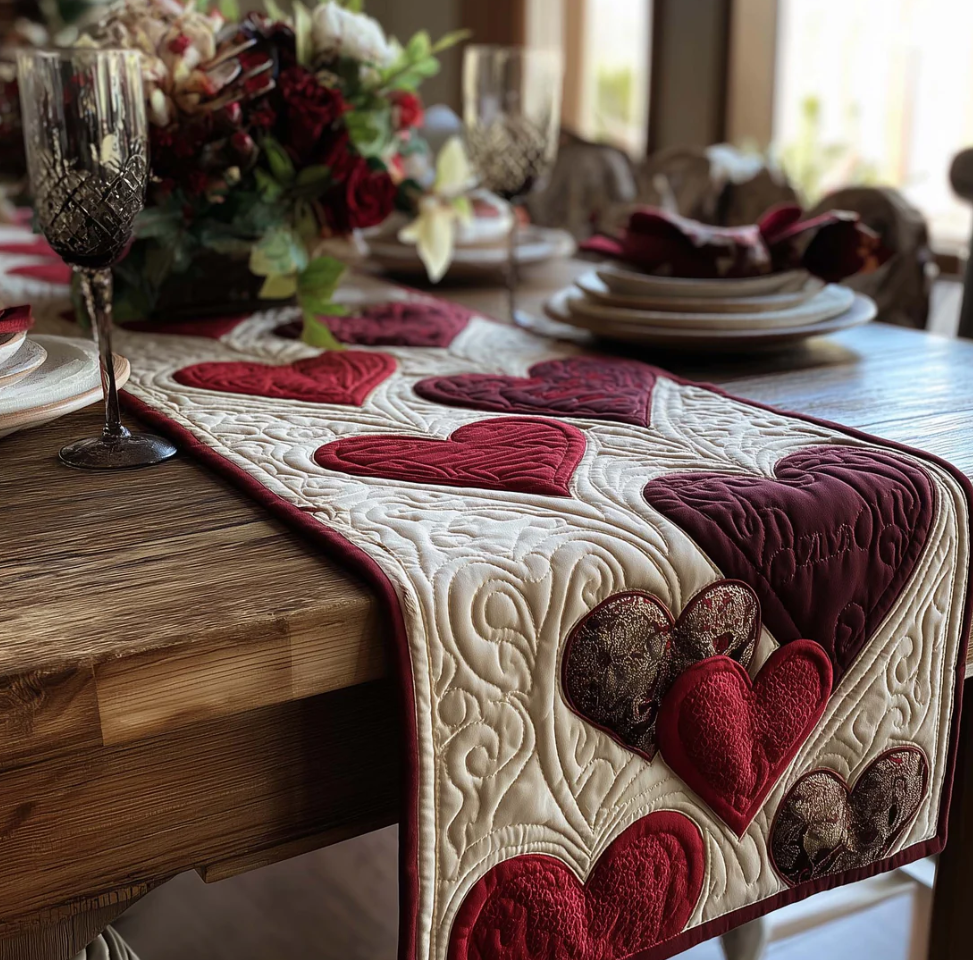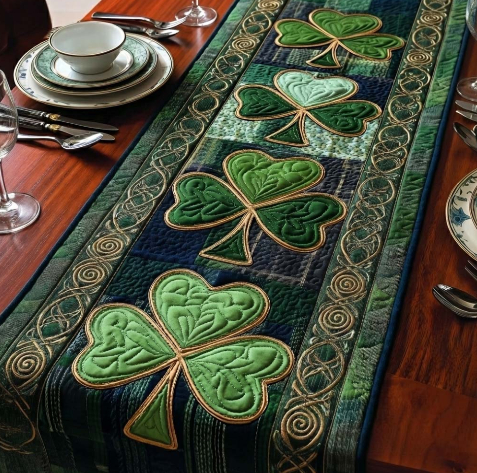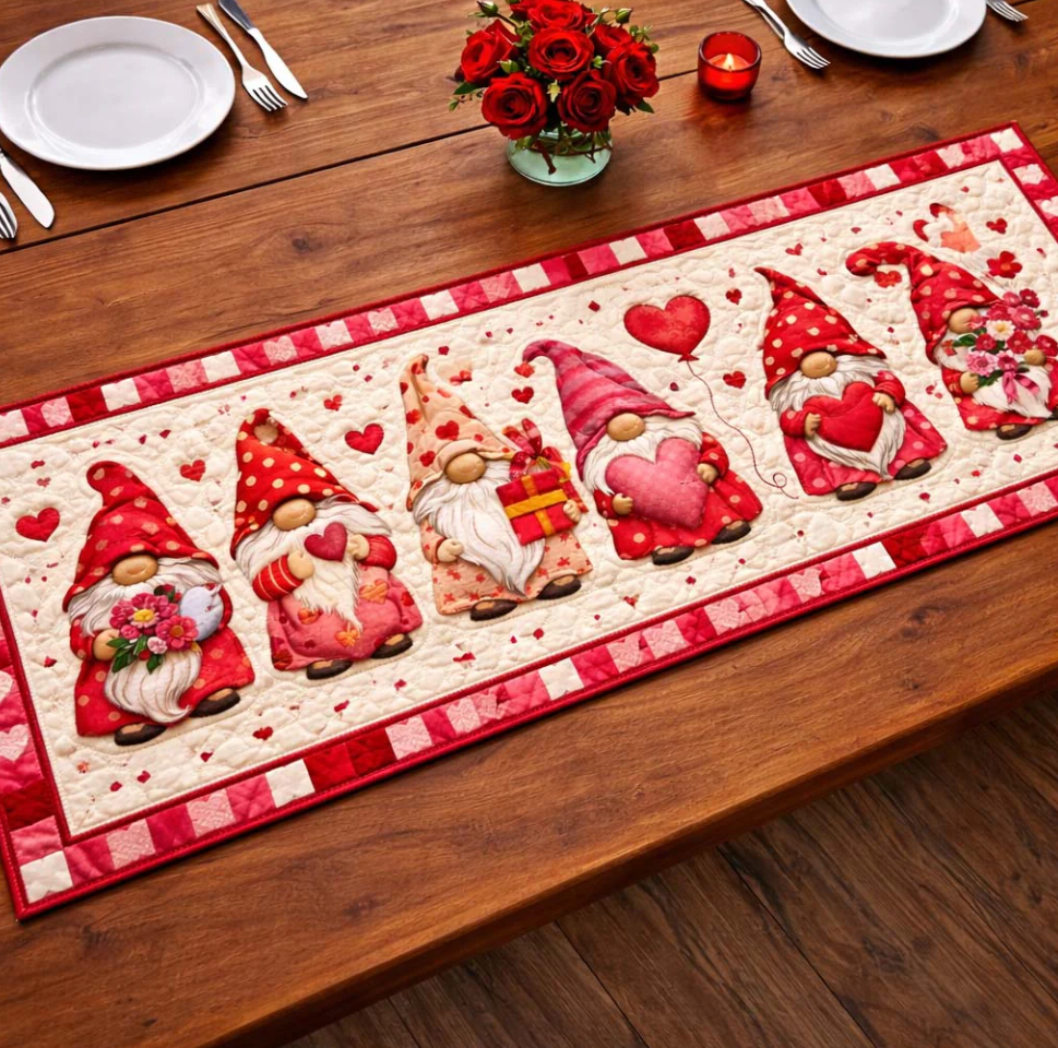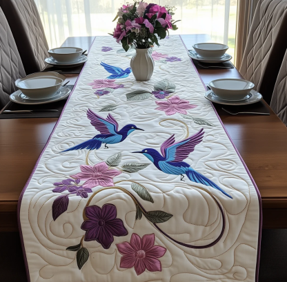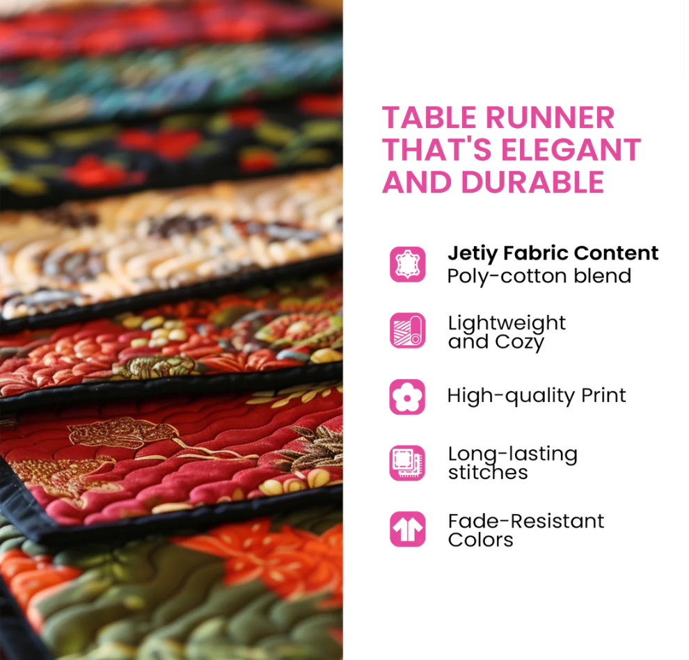 Artistic Quilted Table Runner with Peacock Gnome Wolf Hummingbird Themed 3D Embossed Pattern Soft Breathable Fabric Decor Mat for Dining Room & Kitchen