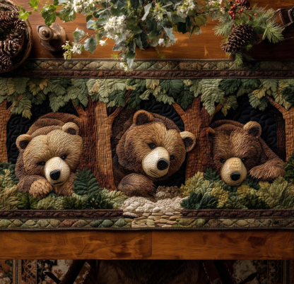 Woodland Bear Family Pattern Handcrafted Eco-Friendly Quilted Table Runner | Bear