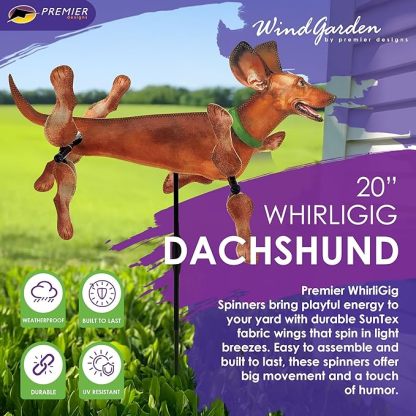 Whirligig Spinner Dachshund 20" – Adorable Dog-Themed Design, Weather-Resistant Outdoor Decor, Durable & Lightweight for Patios, Yards, and Gardens - Eye-Catching Wind Spinner