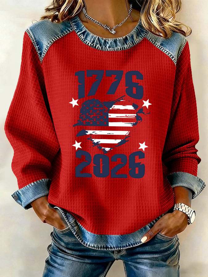Women's 250th Anniversary 1776-2026 Denim Trim Waffle Knit Sweatshirt